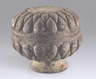 豆形的银盒捶揲出凸起辐射状花瓣纹,工艺与纹饰结合;