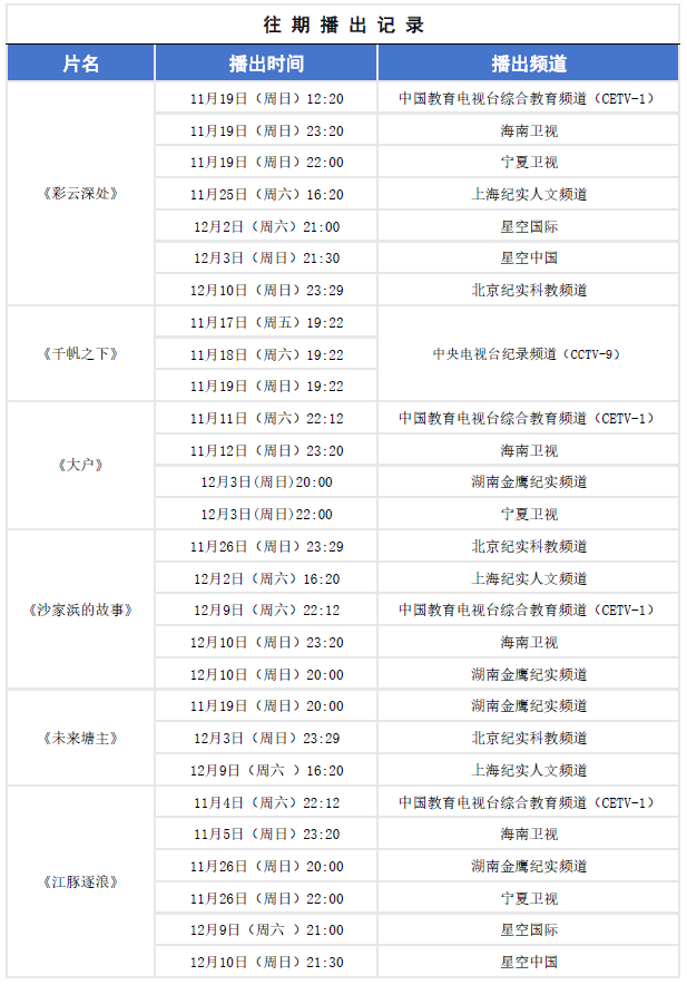 备注:具体以各电视台实际播出为准