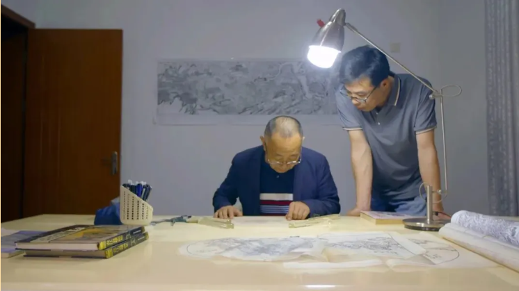 随着主体图案逐渐清晰,张来喜将进行最后一步“细雕”。在漆层上画下细节的图案后,随着匠人双手的起落,山峦的层次与起伏,房屋栋梁的立体感,一步步在刻刀下浮现。