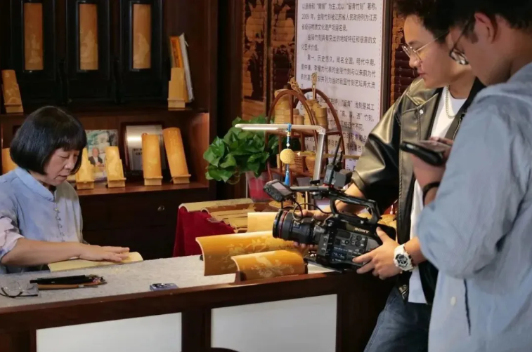 摄制组来到赵荣老师位于甘熙故居南京民俗博物馆的工作室时,赵老师正在制作臂搁。